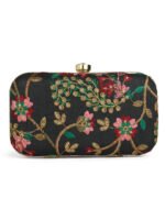 Black & Goldembroidered box clutches Has shoulder strap, 1 main compartment with twist closure