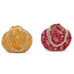 Combo – Designer Embroidered Potli Bag – Golden & Red