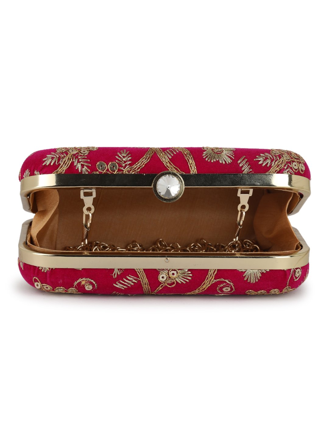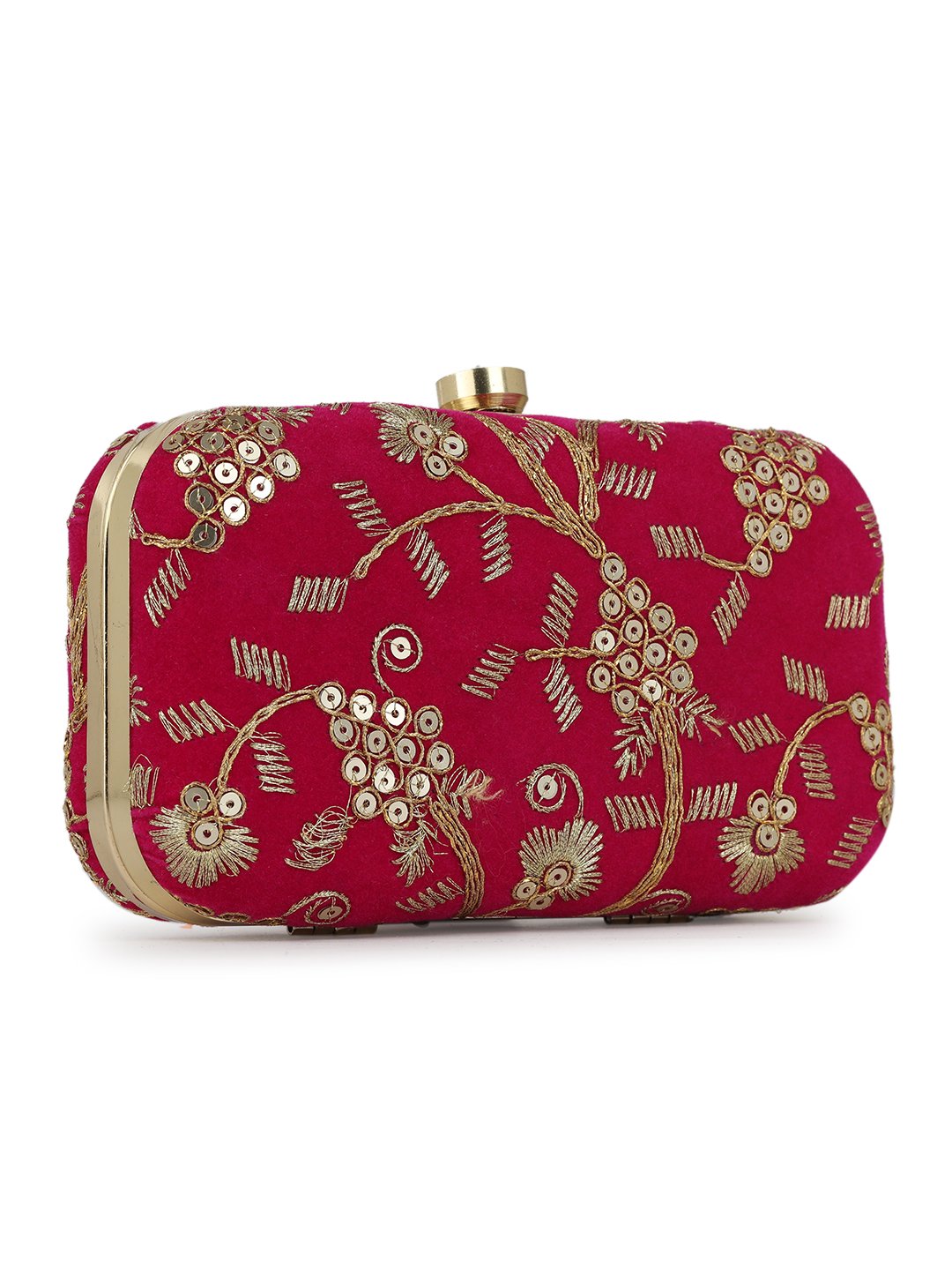 Combo Of Boho Bag And Pink Embroidered Box Clutch For Girls and womens