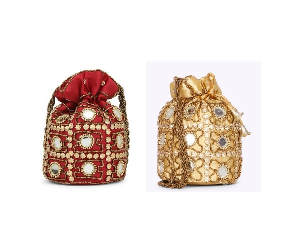 Combo – Designer Embroidered Potli Bag – Golden & Red