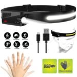 LED Motion Sensor Waterproof Head Torch USB Rechargeable Headlamp Flashlight 350 Lumen Silicone Head Lamp for Swimming, Cycling, Camping & Trekking