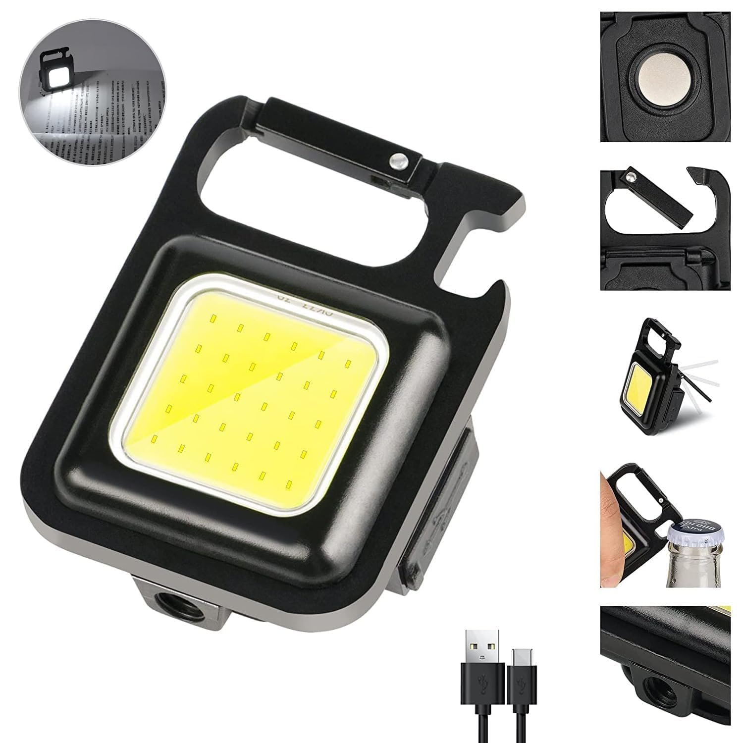 Symactive Keychain Flashlight 4 Light Mode Magnetic Work LED 6W USB Rechargeable Bottle Opener Water Resistant for Camping & Nighttime Trekking (Black, Pack of 1)