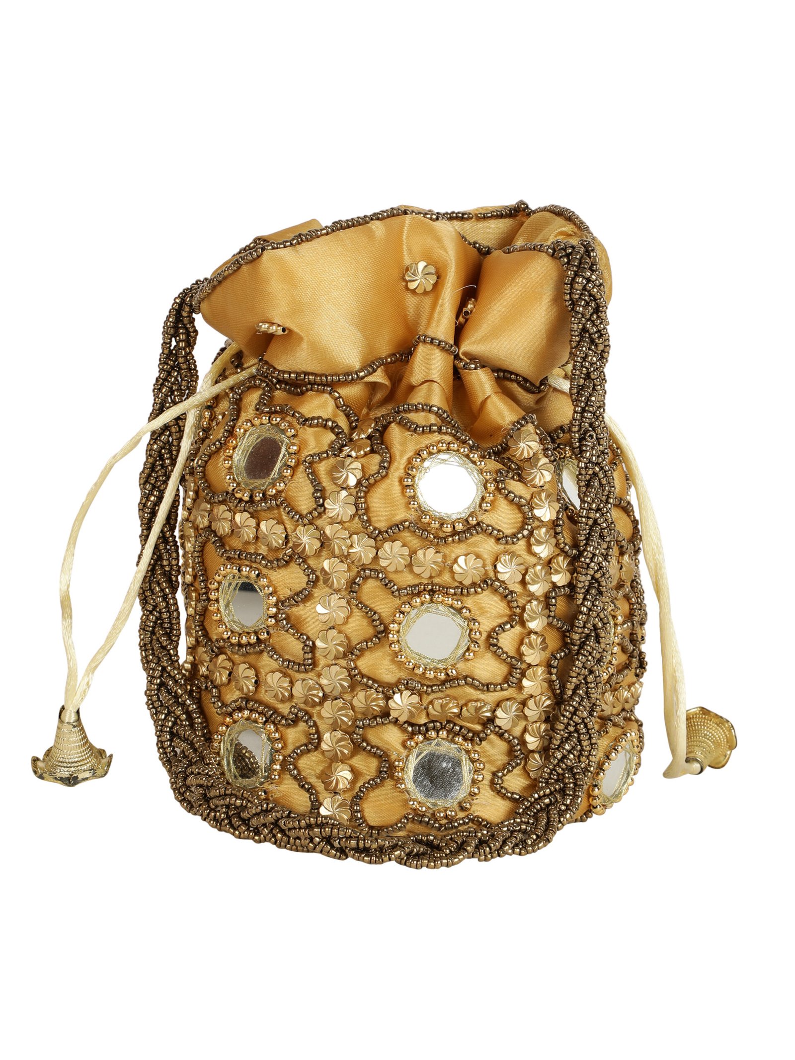 Gold-toned embellished potli clutches Has wrist loop 1 main compartment with drawstring closure